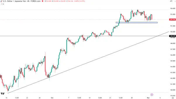 151.50一线是下方的首要支撑参考,跌破后恐考验149.20附近的支撑。