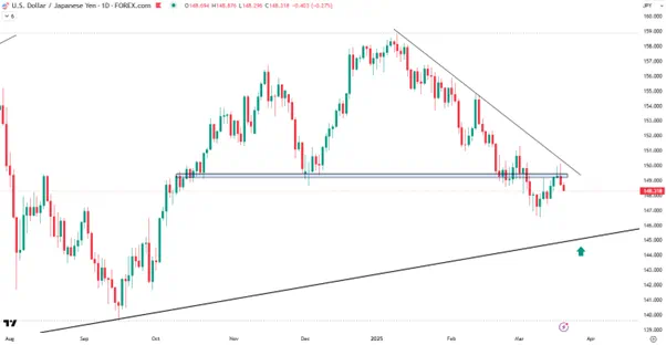 美/日在屡次尝试突破149-150区域未果后,或延续下行前往145寻求支撑。