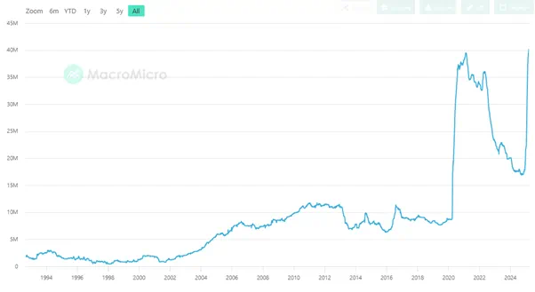 当前的Comex黄金库存已经突破4000万盎司或1250吨,自去年11月美国大选以来增加了2300多万盎司,这反映的是前所未有的实物黄金交割需求。